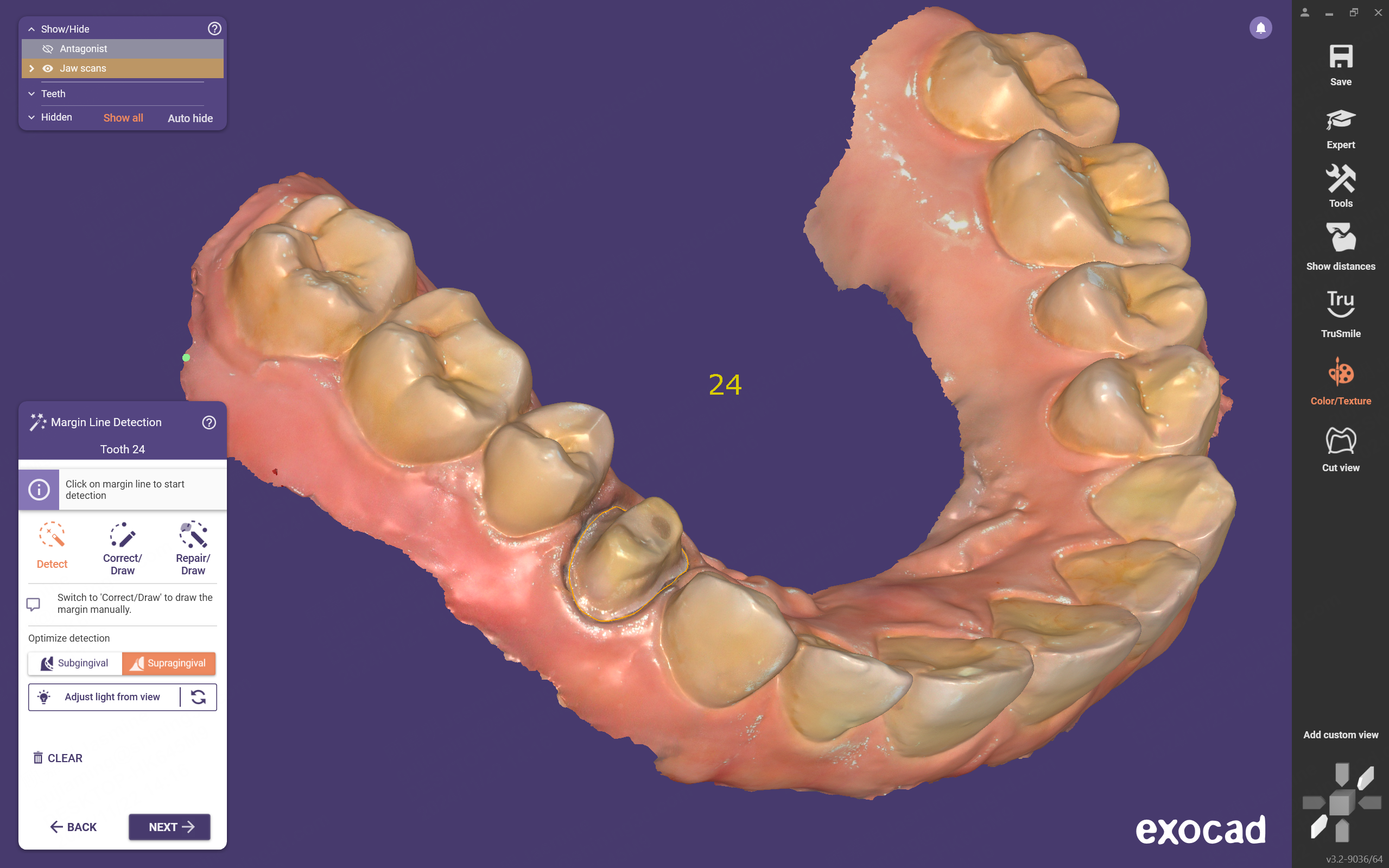 El kit de herramientas para clínicas asiste a los dentistas en la evaluación y el pre-diseño de los datos escaneados en sus propias clínicas.