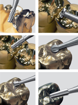 Desde abrir o profundizar fisuras principales, pasando por pequeñas correcciones en las superficies interiores o en hendiduras, hasta el alisado de los contornos oclusales – ofrecemos el instrumento adecuado para un desarrollo óptimo del trabajo.