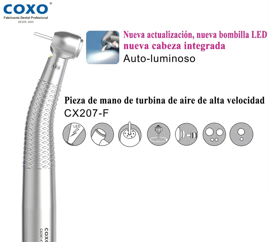 2) Universalmente compatible con sillones dentales de todo el mundo, autoiluminado sin necesidad de conexión a circuito;