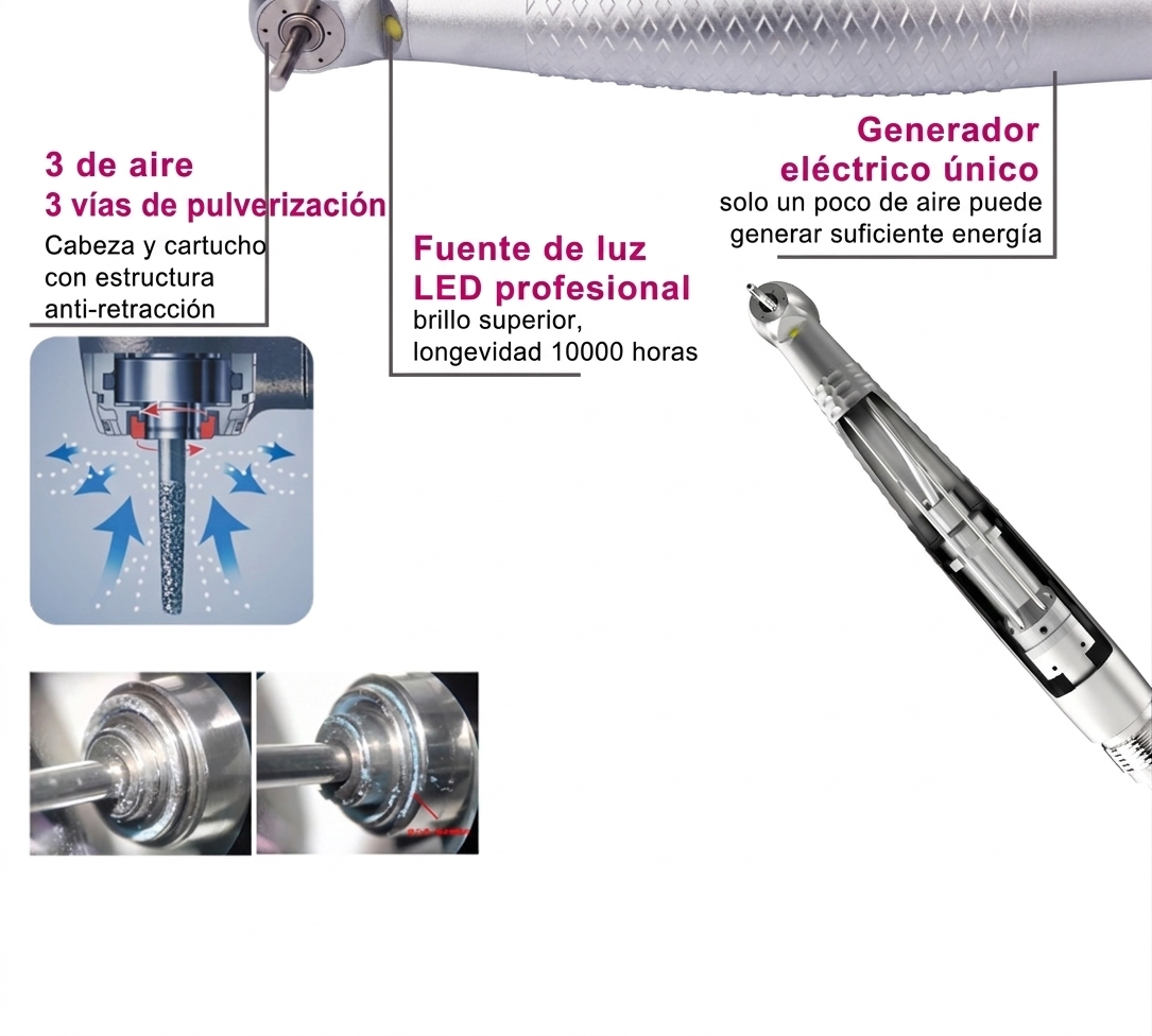 8) Compatible con conectores rápidos NSK para un funcionamiento perfecto;