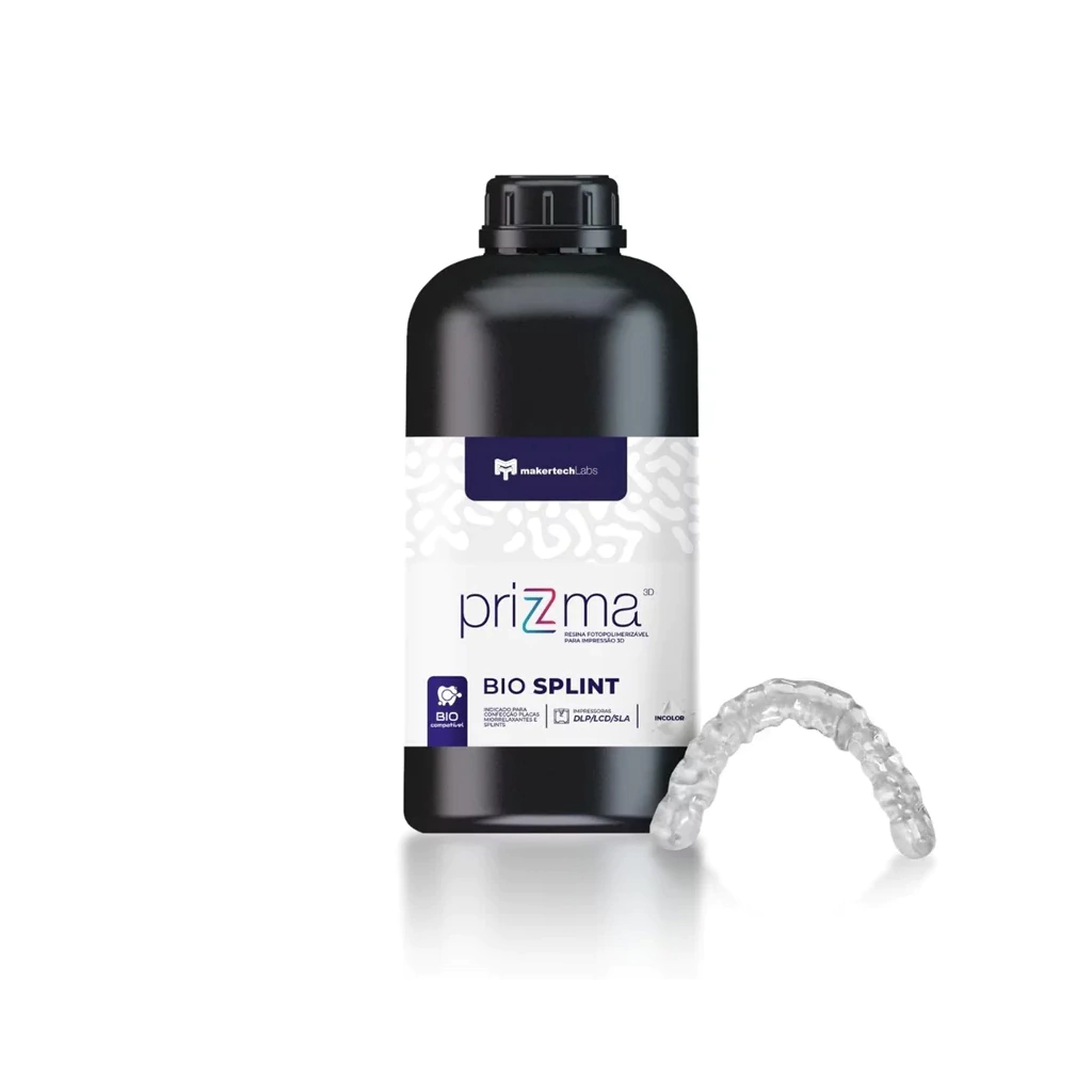 La resina PriZma 3D BIO SPLINT está indicada para la fabricación de placas y férulas miorrelajantes. Con una excelente definición, resolución, baja contracción y repetibilidad, facilita la inserción de la lavadora directamente después de la impresión y el posprocesamiento. Es una resina traslúcida, con excelente resistencia y velocidad de impresión y funciona en impresoras LCD y DLP.
