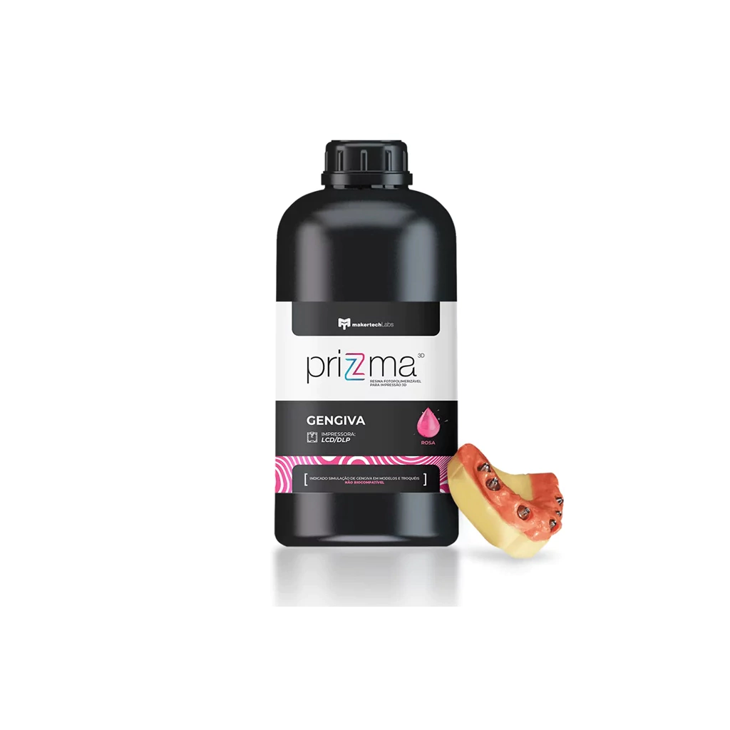 La resina 3D priZma Gingiva está indicada para la impresión 3D de simulación de encías en un flujo de trabajo digital en conjunto con los modelos y matrices. Permite la impresión 3D de partes del modelo que necesitan cortes y flexibilidad, como el perfil de emergencia en modelos de implantes. También es ideal para simular encías en modelos de prótesis.
